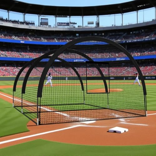 【PRACTICE IN COMPLETE SAFETY】Full-Coverage Ball Containment Focus on your form, not on chasing balls or breaking windows. Our baseball & softball net provides complete 360-degree protection, safely containing everything from hard-hitting cricket balls to fast-pitched baseballs and powerful golf drives. A convenient button-up side panel allows for quick and easy entry, making your training sessions both secure and incredibly efficient.