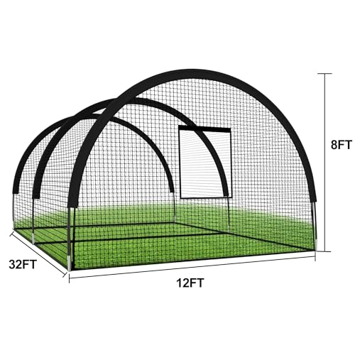 【HEAVY-DUTY 9.8M MULTI-SPORT CAGE】Your All-in-One Training Solution Unleash your potential with this huge 9.8m(L) x 3.7m(W) x 2.4m(H) training net. Expertly designed as a professional baseball batting cage, a robust cricket net for the garden, or a wide golf practice net. Built with ultra-durable polyester netting, reinforced Oxford cloth seams, and high-strength fiberglass poles, it’s engineered to withstand thousands of powerful hits, ensuring years of reliable practice for the whole family.