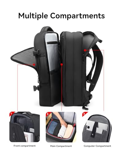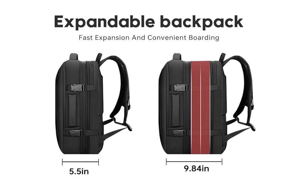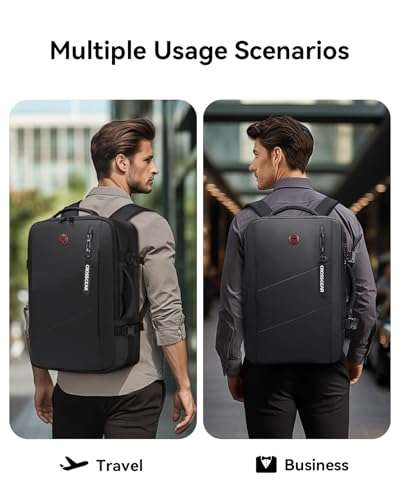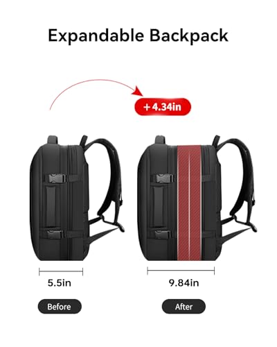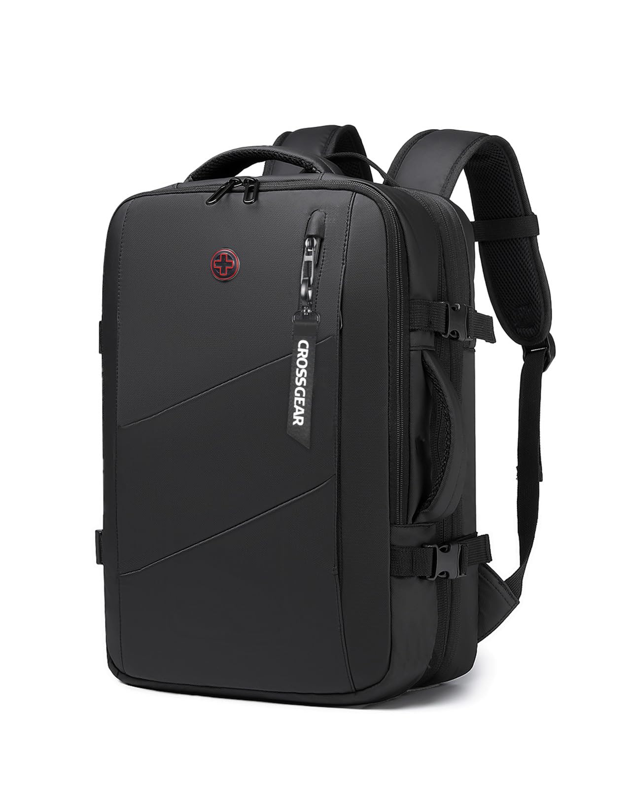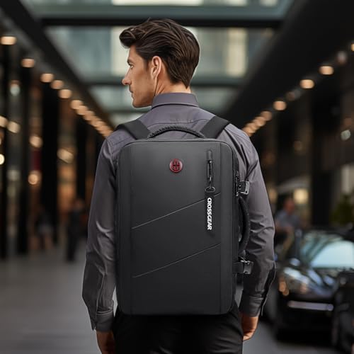 CROSSGEAR 15.6 Inch Laptop Backpack for Men, Expandable Travel Business Backpack, Water-Resistant with USB Port, Black