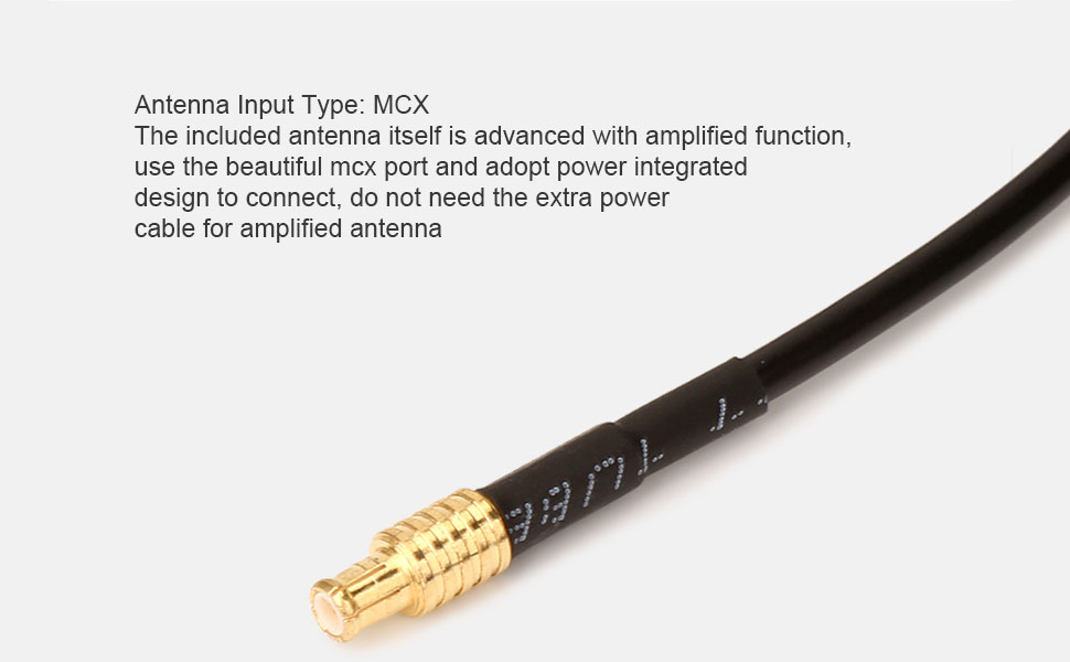 - The included antenna itself is advanced with amplified function, high sensitivity, use the MCX port to connect