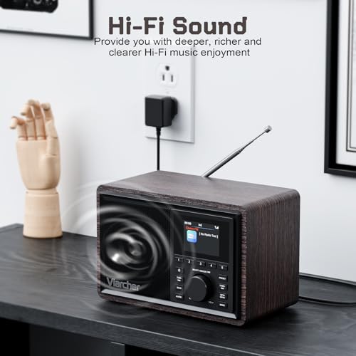 - 【Wooden DAB/DAB+ & FM Digital Radio】Wooden DAB radio specifically uses ultra-long and high-sensitive antenna, which can better receive radio signals. Built-in 5W speaker units deliver true stereo and room-filling volume, and a bass-reflex tube subwoofer for deep sound,which brings high-quality sound experience. Vintage DAB offers enhanced digital radio quality, and allows you to access a range of digital radio stations. Simple to operate, the portable radio allows you to listen wherever.