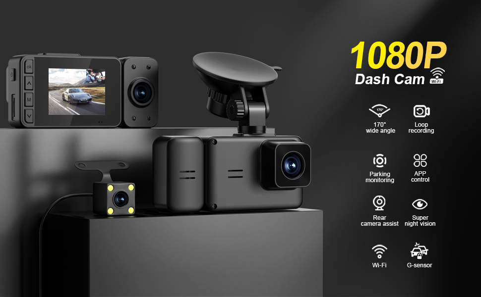 Complete Accessory Set: Includes dash cam, car charger, waterproof rear camera, adjustable bracket, 32GB Micro SD card, built-in G-Sensor, and user manual. It supports loop recording, automatically overwriting old files when the card is full.