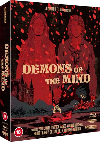One of Hammer’s most ambitious and under-appreciated films, Demons of the Mind explores the Baron Zorn’s (Robert Hardy) conviction that his son Emil (Shane Briant) and daughter Elizabeth (Gillian Hills) are suffering from a hereditary madness. In an attempt to contain their insanity, he keeps them imprisoned and drugged, yet these measures are not enough to stop his children from expressing their decadent desires and violent natures. Desperate for a cure, Zorn employs the discredited Dr. Falkenberg (Patrick Magee) to investigate his family’s plight…