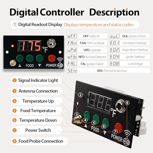 【 Monitor food temperature 】The digital PID control board has one meat probe port that allow you to monitor and hone in on the optimal temperature of your food ( not included meat probe )