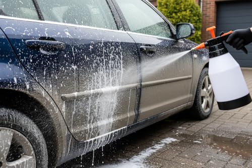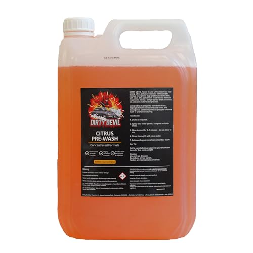 DIRTY DEVIL Concentrated Citrus Pre Wash 5L + 1.5L Pressure Sprayer – Powerful Pre Wash – Cuts Through Dirt, Bugs & Road Grime –Safe on All Surfaces – Powerful Degreaser for Paint, Plastic & Wheels