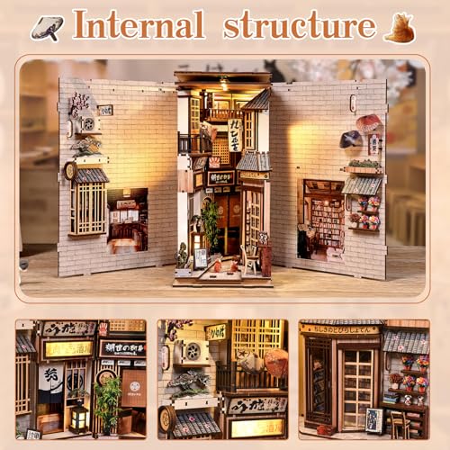 - 【Immersive Japanese Alley DIY Book Nook】This DIY wooden book nook kit includes 280 detailed pieces and offers a rewarding 4–6 hour assembly experience. Recommended for ages 14 and up, it’s perfect for those who enjoy mindful crafting and miniature model building.