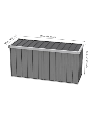 - 【Brief Specification】This multi-purpose large metal box is 156x61x75 cm in size, perfect for any outside patio, deck, or porch. With its sleek grey finish and robust construction, it serves as both a functional storage unit and a long-lasting addition to your outdoor living space