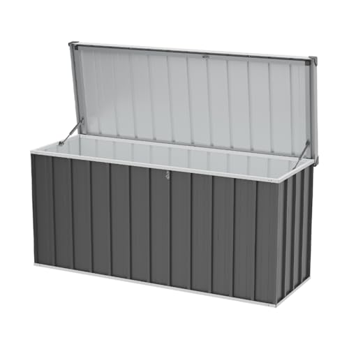 DKIEI 600L Metal Garden Storage Box with Password Padlock | Lockable Large Outdoor Storage Box Waterproof, XXL Outside Garden Boxes for Cushions, Tools, Equipment, 156x61x75 cm, Carbon Black