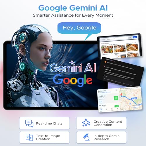 - 【Deeply integrated Gemini – AI Tablet】Compared to Android 15, Gemini is now more deeply integrated, offering 40% faster response speeds and providing real-time intelligent assistance. It helps you efficiently complete tasks like translation, summarisation, schedule management, and learning. Whether you're a student, a remote worker, or part of a busy household, this Gemini AI Android tablet intelligently adapts to your needs, helping you unlock a smarter way of life.