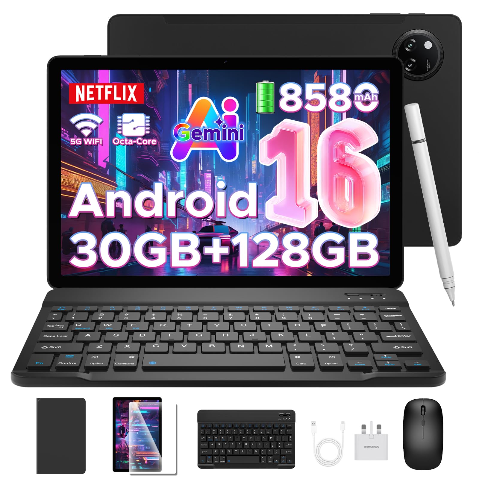DOOGEE Tab A9 Pro+ Android 16 Tablet, (2026) Newest 11 Inch Tablets, 30GB RAM+128GB ROM/2TB, 8580mAh Android Tablets, Tablet with Keyboard/Pen/Mouse/Case, Widevine L1, Dual Speaker/Face ID/OTG
