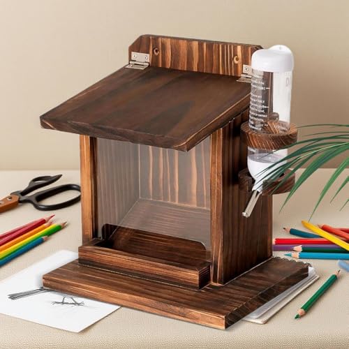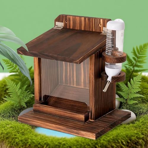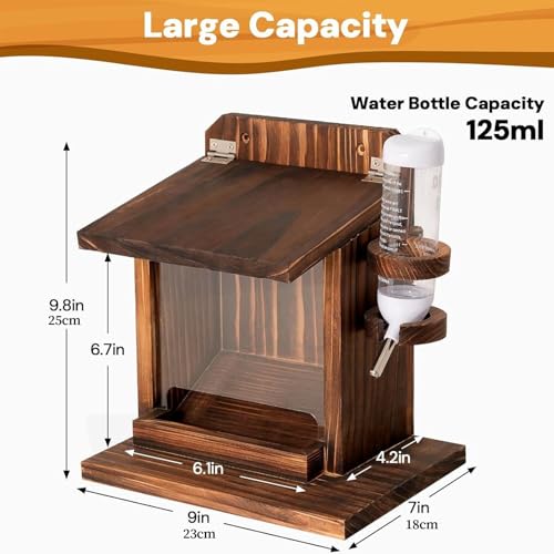 Dorugage Squirrel Feeder Box | Backyard Chipmunk Feeding Box with Water Bottle – Wooden Wall Mount Feeder House for Bird Food Nuts Corn Cob Garden Tree Balcony Backyard Outdoo