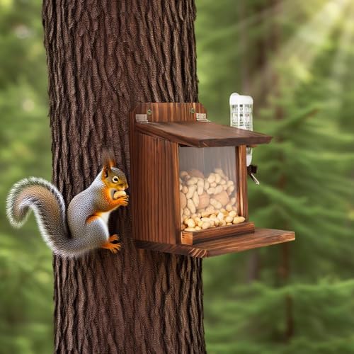 Easy Level Inspection: Designed with a transparent window, this Squirrel Feeders For Outdoors enables effortless monitoring of food levels, helping maintain a consistent supply while enhancing the outdoor experience for both wildlife enthusiasts and playful squirrels