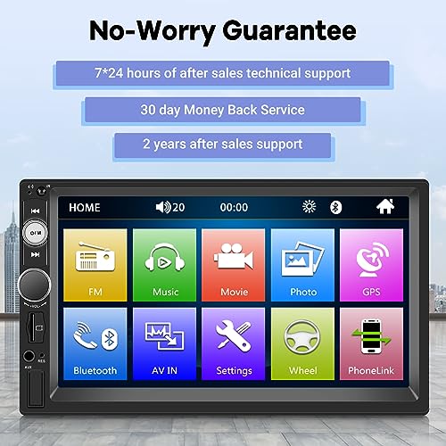 【Best Service】We provide 7*24 hours of after-sales technical support to help you solve installation and operation problems. 30 days money-back service, 24 months after sales support, if you have any questions about our 7 inch double din car stereo, please feel free to contact us