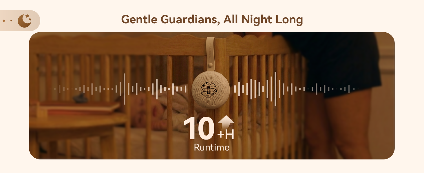 - , : No app, Wi-Fi or account required. This portable sound machine baby works straight out of the box. Just turn it on and let familiar sounds do the rest. A steady presence for sleep, backed by a 365-day warranty, it offers reliable calm parents can trust for everyday routines.