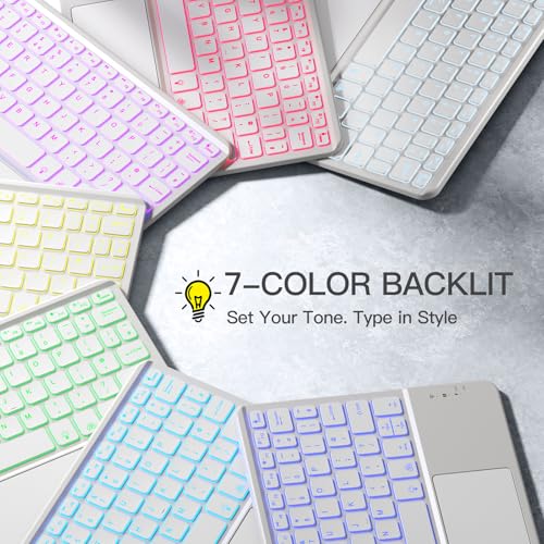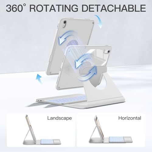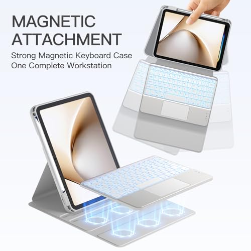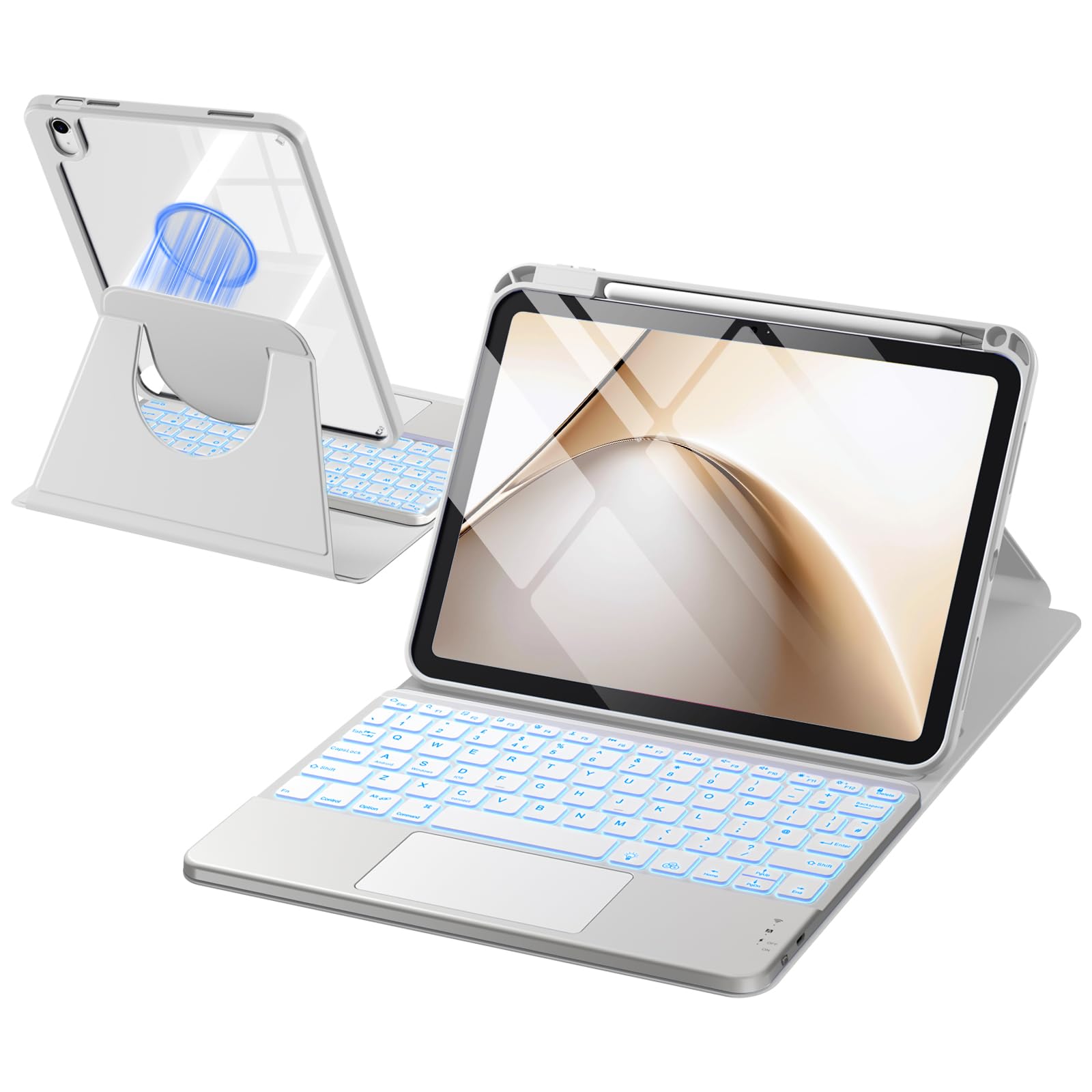 drivego 360 Rotating Keyboard Case for iPad A16 11th 10th Generation with 7 Color Backlit Trackpad, Magnetic Detachable Cover Wireless Keyboard for iPad 11th 2025 10th 2022 (11/10.9 inch), LightGrey