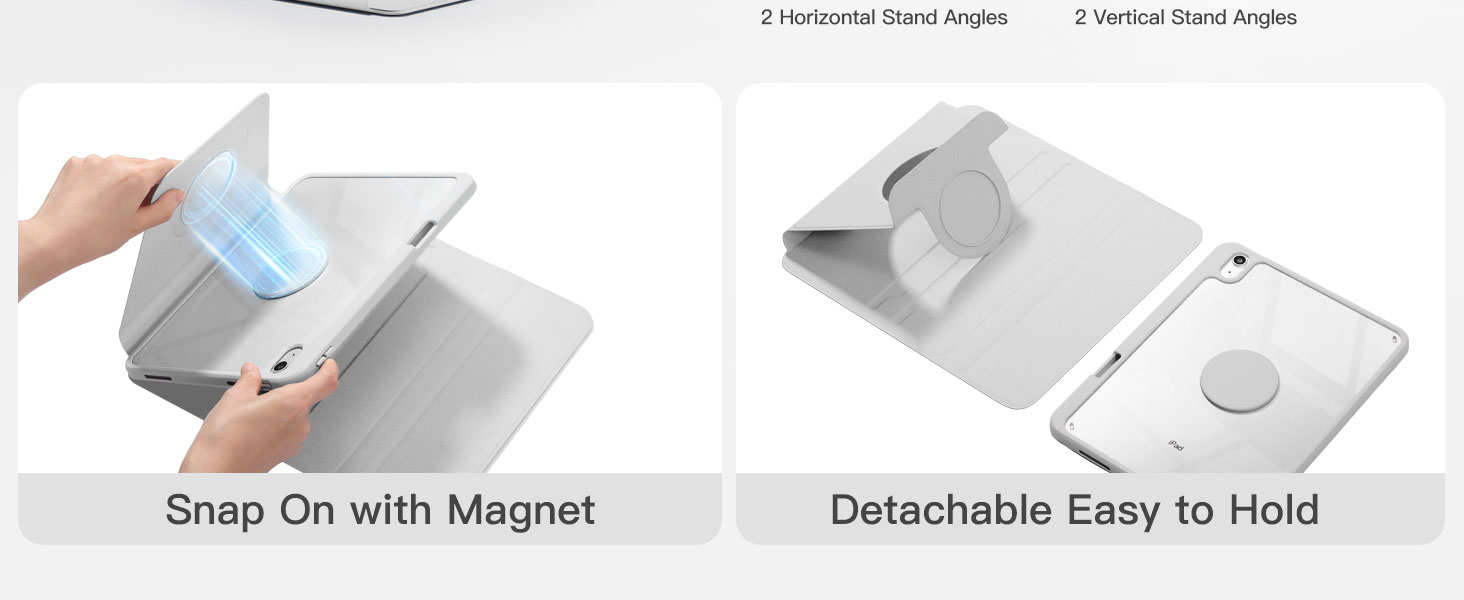【360°Rotation & Magnetic Detachable Cover】The drivego ipad 10th generation case with keyboard features 360° freely detachable magnetic cover, allowing you to remove and use it separately—breaking the limitations of traditional protective cases. Whether you're lying down or sitting at home or in the office, it offers the perfect viewing angle for entertainment, work, or study. The back cover is made of highly transparent, hard PC material, which can clearly display the icons on the back.