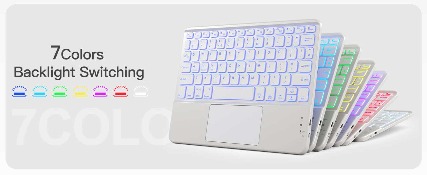【Adjustable 7-Colors Backlit Keyboard】Drivego ipad 11th generation case with keyboard with Keyboard with a full row of the laptop-like iPad iOS shortcuts is customized for your ipad, and allow you easily switch between adjusble 7 RGB pure backlit with 3 levels adjustable brightness, engaging yourself in a free and relaxed typing experience in any dim condition.