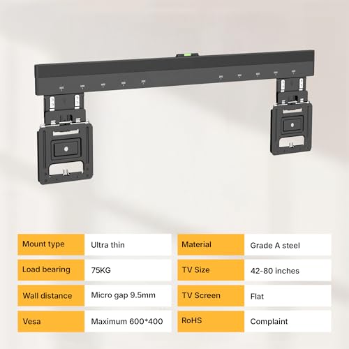 eBii Ultra Slim Micro Gap TV Wall Mount for 42″-80″ Tvs