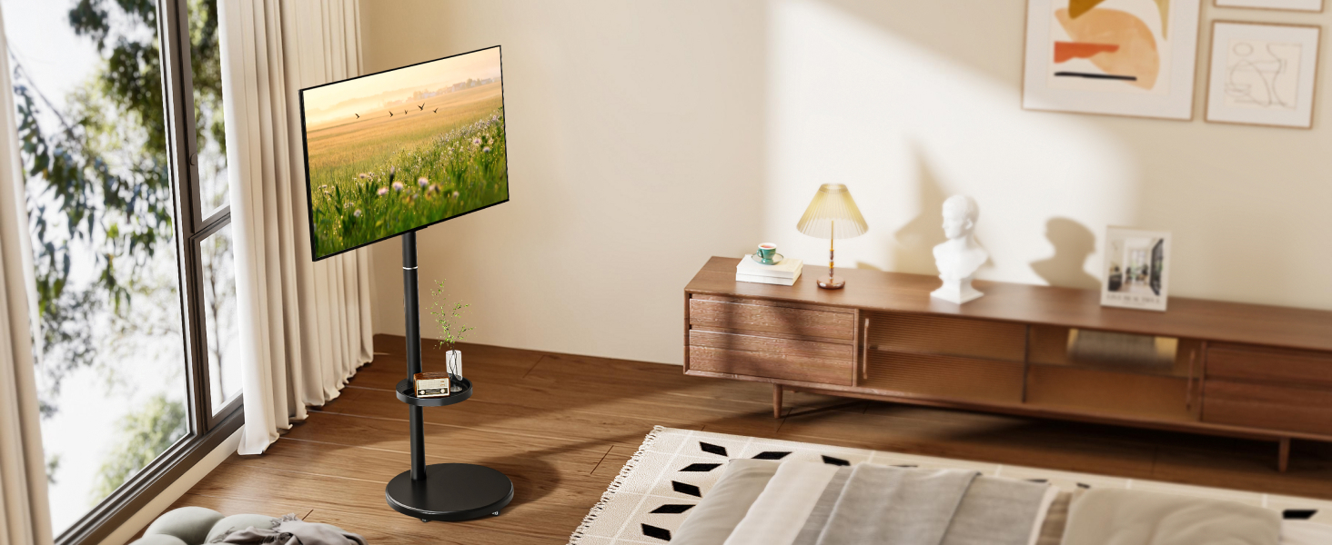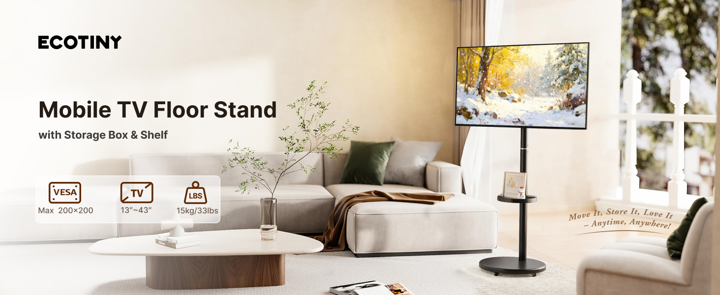 ECOTINY Rolling TV Stand with Wheels for 17–43 Inch TVs