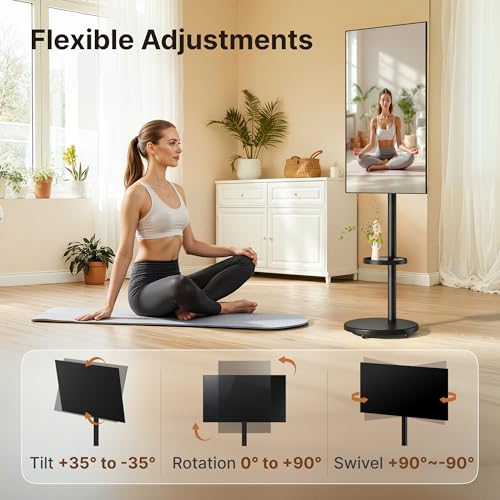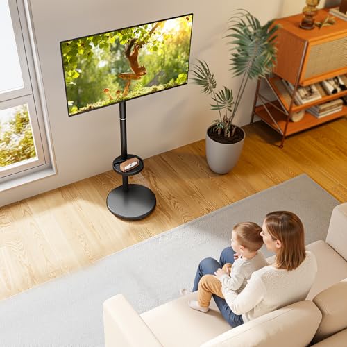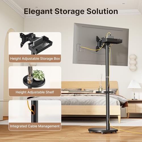 ECOTINY Rolling TV Stand with Wheels for 17–43 Inch TVs up to 15KG, Height Adjustable Strong Mobile TV Cart with Shelf, Portrait to Landscape, Max VESA 200x200mm, Black