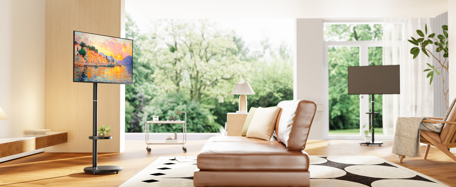 Smooth and Silent Hidden Wheels: Equipped with hidden, smooth, and silent wheels, this stand allows effortless movement without disturbing your peace. Whether moving it from room to room or adjusting its position, you’ll enjoy quiet and seamless mobility.
