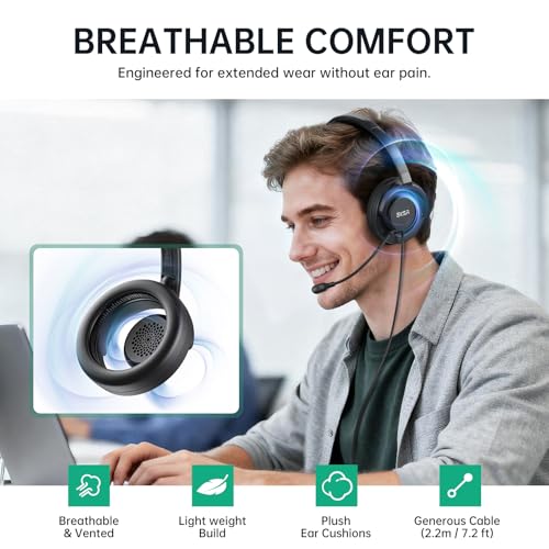 Flexible 360° Microphone with Noise Cancellation:Equipped with a highly sensitive, 360° rotatable microphone boom for optimal positioning. Its advanced noise-cancelling technology effectively suppresses ambient noises like keyboard typing, ensuring your voice is transmitted with outstanding clarity for professional calls and meetings.