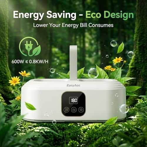 Electric Clothes Dryer, Portable Clothes Dryer Energy-Efficient 2H Quickly Drying 600W Timer UV Sterilization Indoor with Cover Fast Drying for Light Clothes Underwear, White, ABS [Energy Class A]