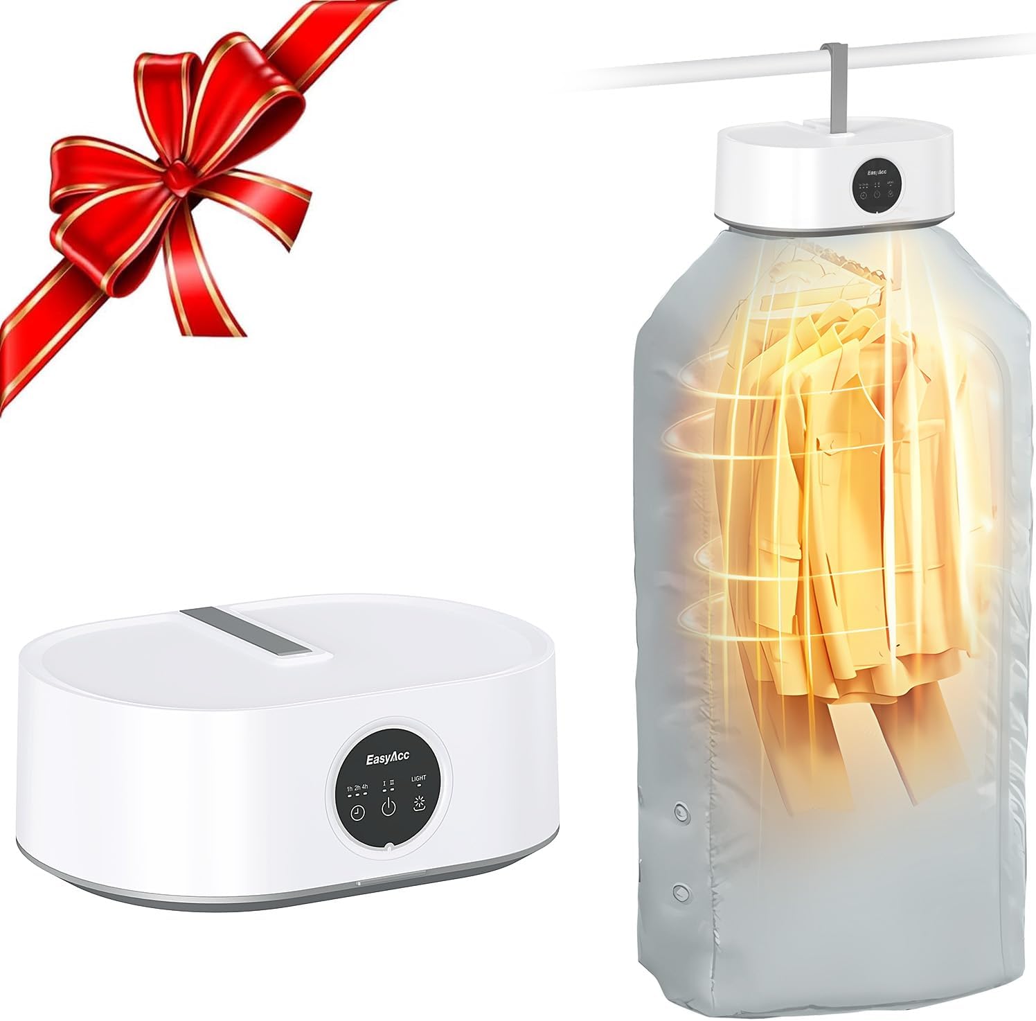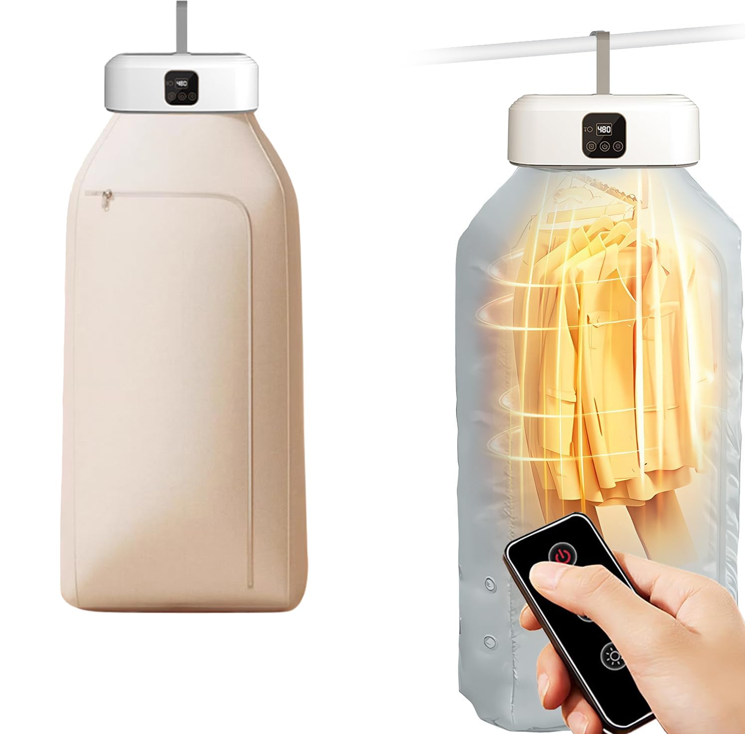 - Compact and Portable: Our clothes dryer is easy to use, just remove bottom lid, attach the cloth cover, hang it up and start using it. Compact size makes this electric clothes dryer easy to carry, great for both home and travel use.