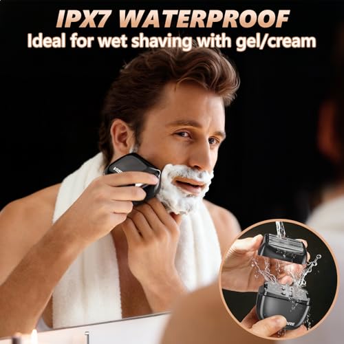 IPX7 Waterproof: Fully washable and a removable head with included brush for easy and deep cleaning, and ideal for wet shaving with gel/cream in the shower
