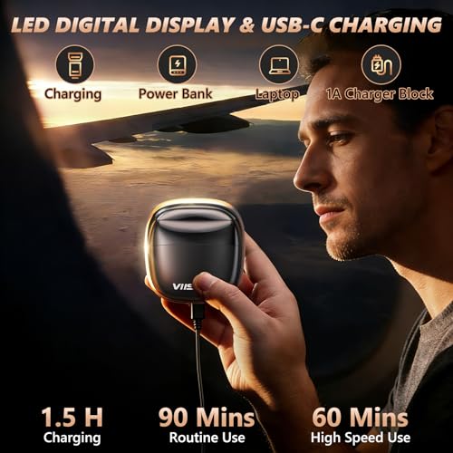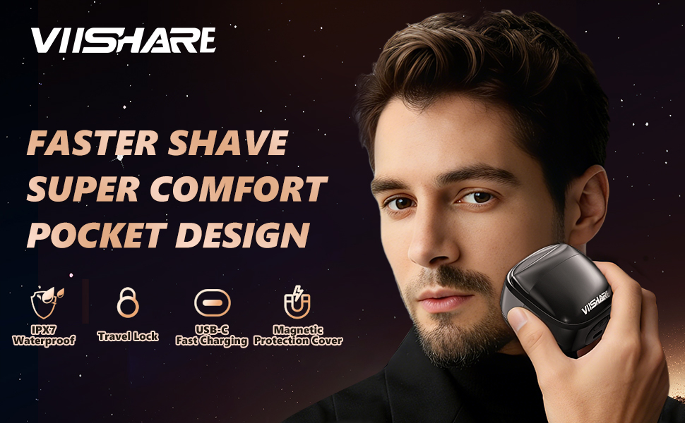 Compact Travel Electric Razor: Pocket-sized at 7cm x 4.5cm x 7cm, perfect for on-the-go use