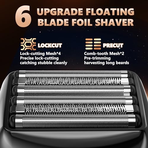 Foil Shaver with 6-Blade Floating: The upgraded 6-blade floating design closely follows facial contours, doubling cutting efficiency, reducing passes, and ensuring a faster, closer and smoother shave