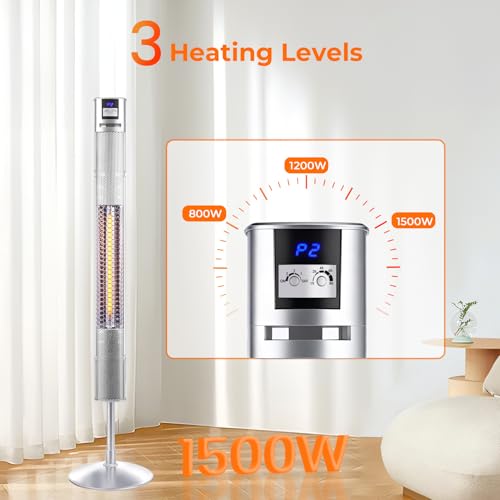 Electric Infrared Patio Heater Outdoor, 2000W Outdoor Heaters for Garden patio heater with Remote&8H Timer, 3 Heat Levels Electric Infrared heater, 3-Rapid Heating Carbon Fibre Tube Tower Space Heate