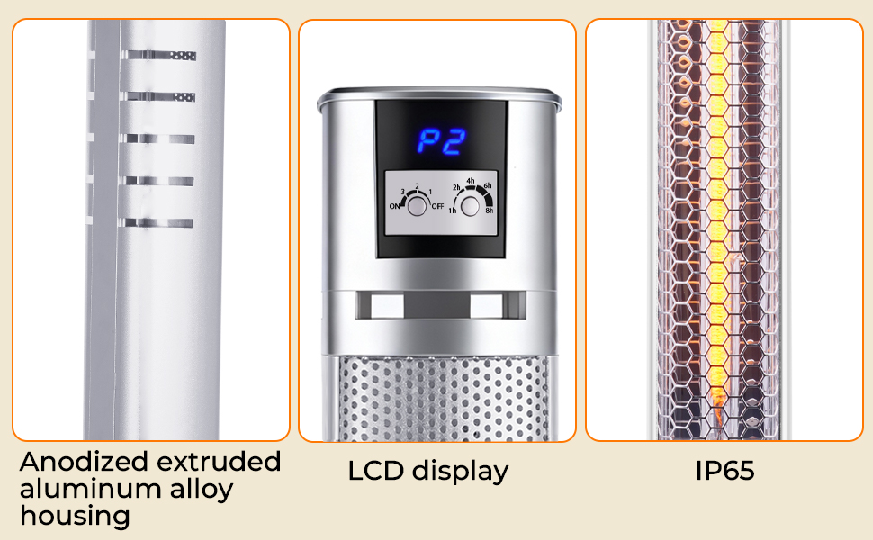 - ️【Waterproof and Safe Features】Our infrared heater is designed for durability with an IP65 water-resistant rating, the heater is protected against splashes, making it ideal for covered outdoor use. Includes tip-over protection for safe operation in any setting. The remote control provides convenient operation, allowing you to adjust settings from a distance.