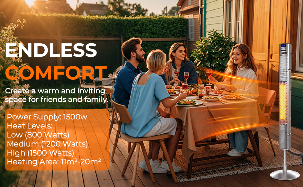 - 【Powerful and Rapid Heating】This infrared heater is equipped with advanced carbon fibre heating technology; the 2000W heater delivers instant warmth in just 3 seconds. Effectively heats areas up to 20m², making it perfect for garages, backyards, porches, balconies, and indoor use during colder months. This heater is perfect for eco-conscious households and outdoor gatherings, offering warmth without high energy costs.