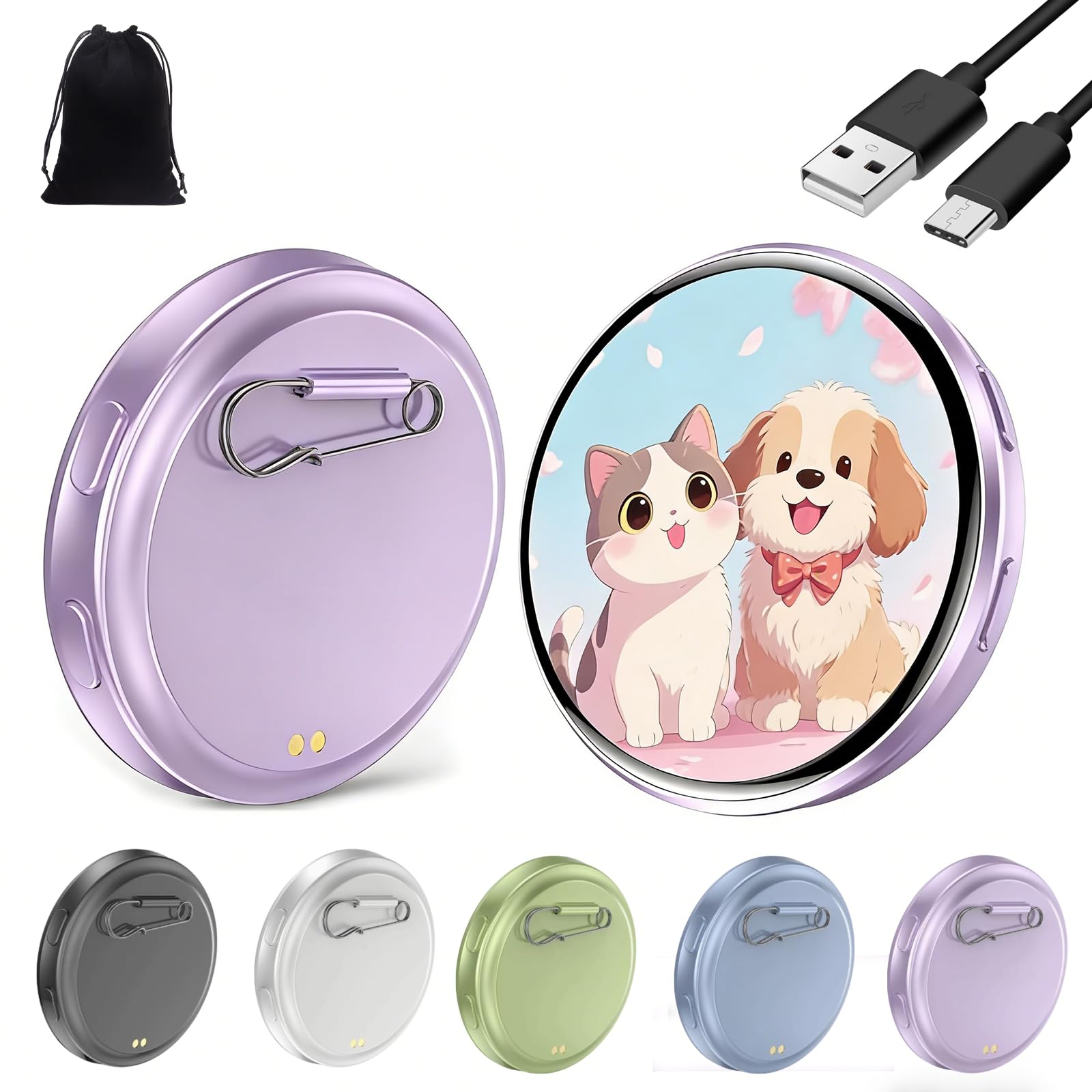 Electronic Badge Digital Display Pin, 1.8'' Ips Touch Screen, Custom Photo Slideshow Gif Video, Magnetic Clip, Long Battery Life, For Cosplay Ita Bag Comic Convention Gif
