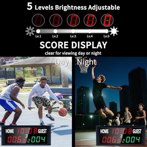 Electronic Scoreboard, Battery Powered LED Digital Scoreboard with Remote Control, 13-digit Basketball Scoreboard with Countdown/up, Score Keeper for Indoor Outdoor Competitio