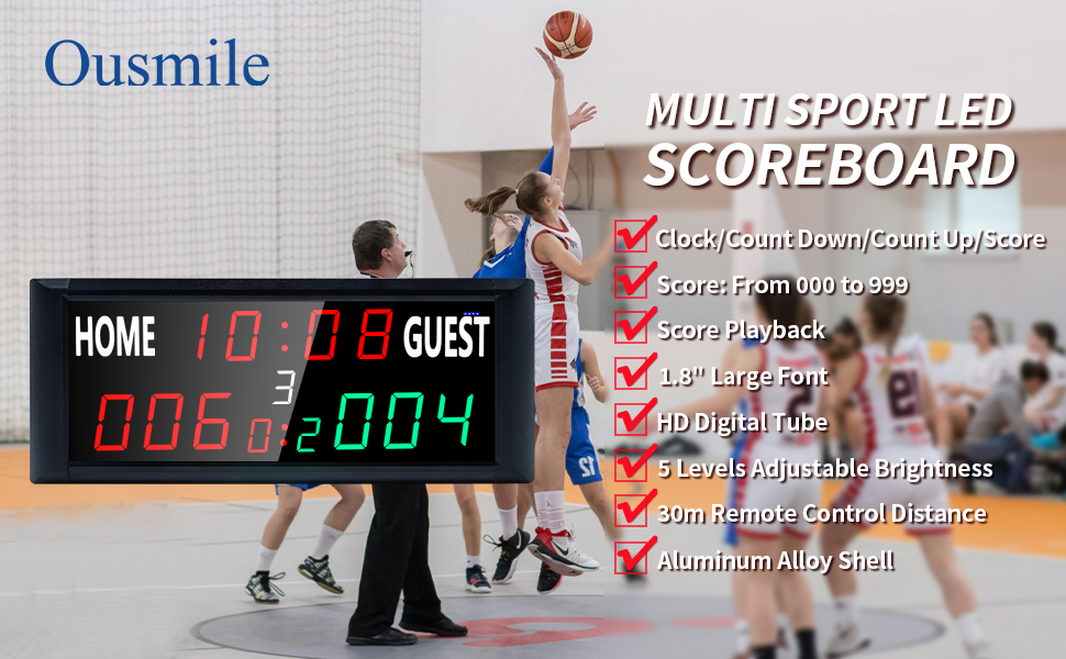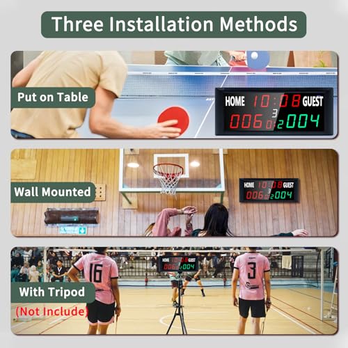 - Long Range Remote Control (10m)- Fully remote-operated! Adjust scores, timer, and settings wirelessly from 33 ft away. No need to approach the board mid-game.