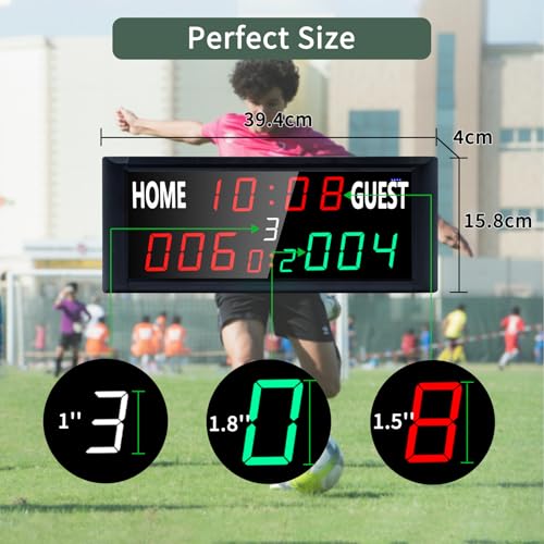- Ultra Clear 1.8" LED Display – Dimensions: 34.5 x 16.6 x 4 cm | Weight: 1.3 kg. Dual-color LEDs (red/green) for easy team differentiation + 8 brightness levels. Visible up to 33 ft (10 m)—even in sunlight.