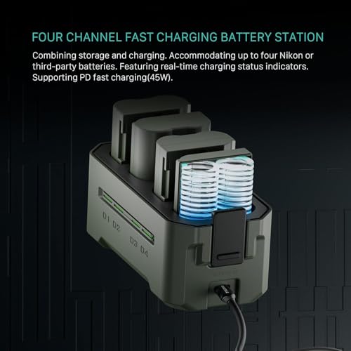 EN-EL15C Replacement Battery and Charger Set, 4 Pack 2400 mAh Batteries and Four Channel USB-C PD Fast Charger, Compatible with Nikon Z8, Zf, Z7, Z6, Z5, D850, D810, D750, D610, D500,TBC-EL15C-B-GN
