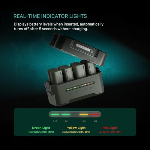 - FOUR SLOTS Allow Users to Charge Four Batteries Simultaneously