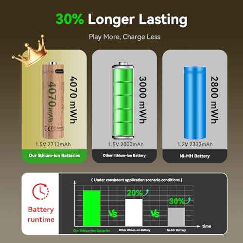 - ✔️【Up to 30% Longer Runtime】ENEGON Lithium Batteries come with 4*AAA batteries and 4*AA batteries included. Each AA battery boasts an impressive energy capacity of up to 4070mWh, delivering higher energy density than most 1.5V lithium batteries on the market. This translates to an outstanding up to 30% longer runtime, effectively reducing the frequency of charging and battery replacement. Perfectly meets your demands for long-term, stable performance.