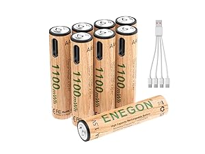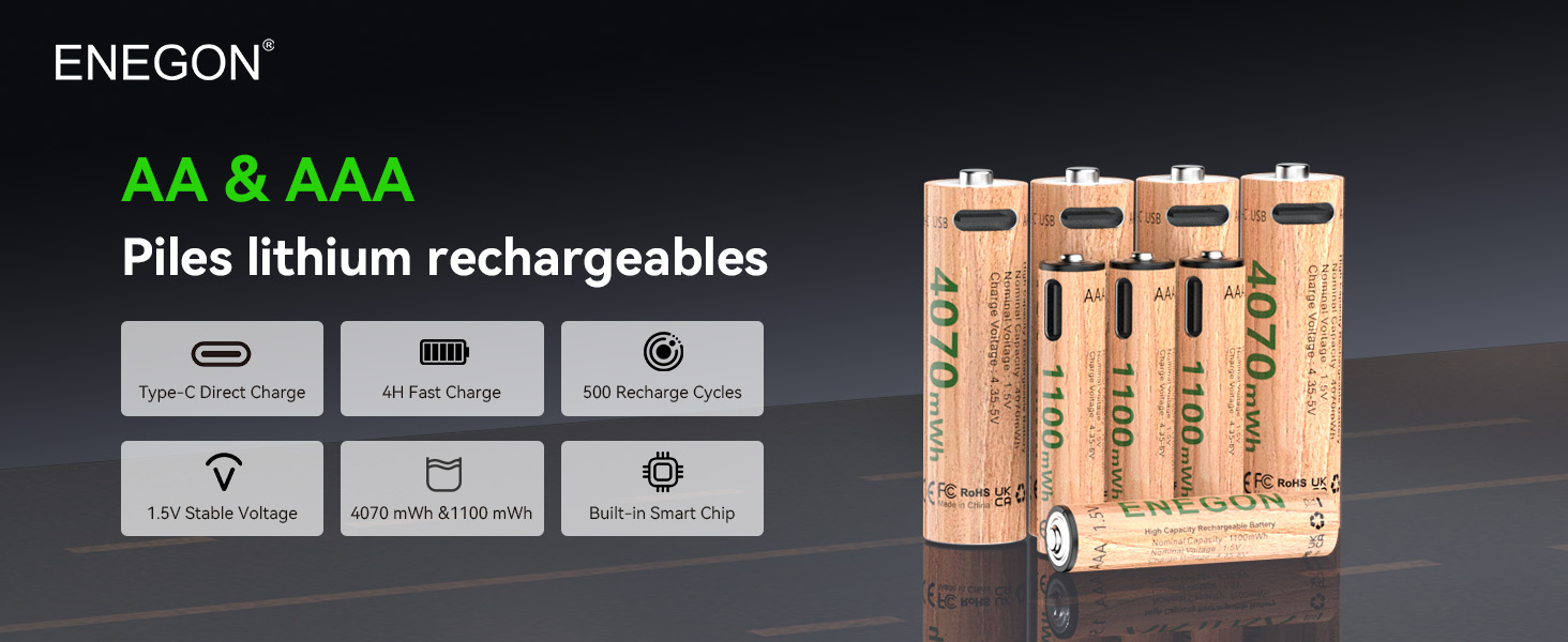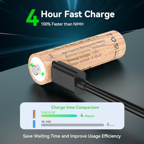 ENEGON Rechargeable Lithium AA and AAA Batteries, 1.5V 4070mWh with 4-in-1 USB-C Cable,Ideal for Remote control, Electronic scale, Ear thermometer, Game controller and more.