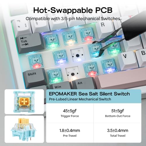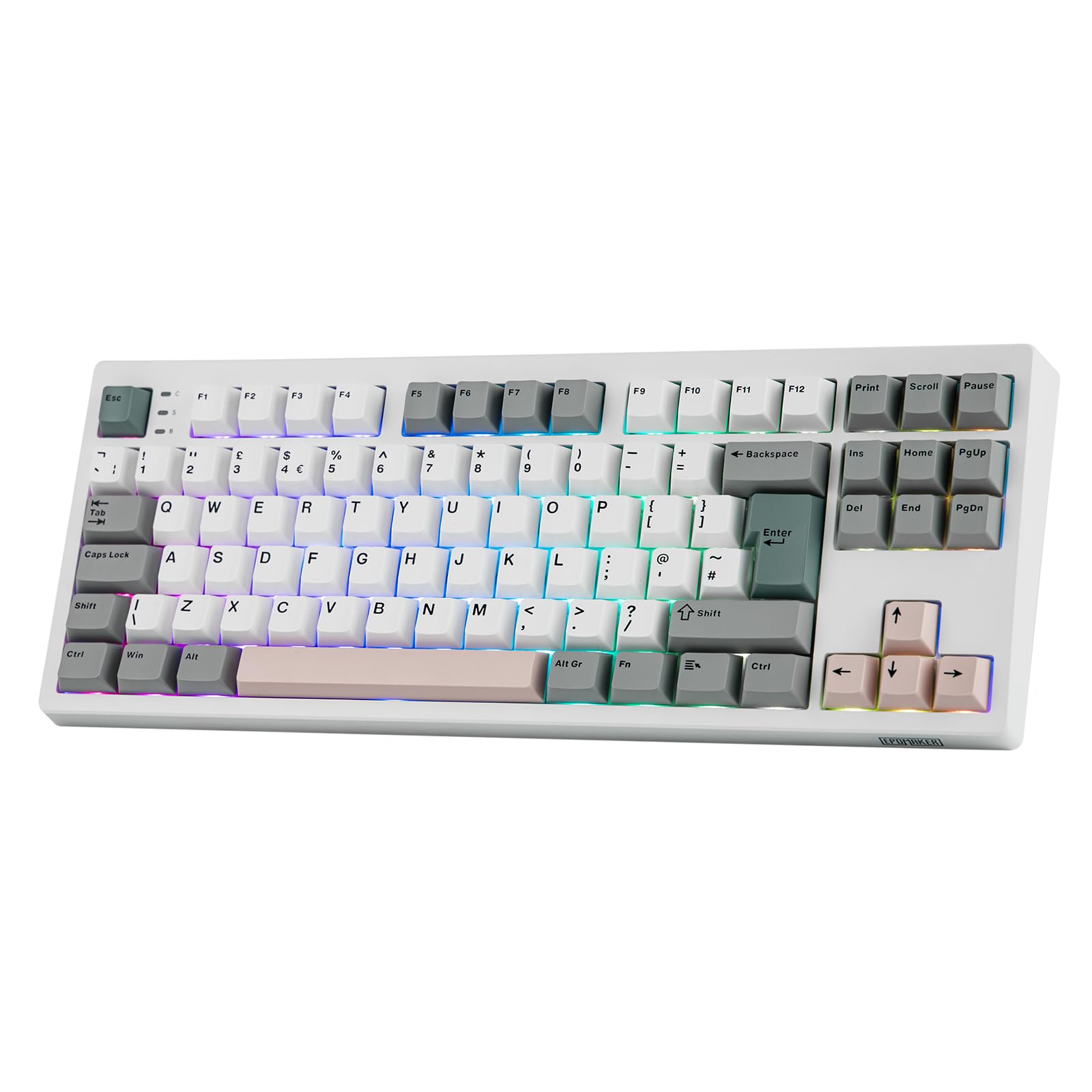 EPOMAKER TH87 Wireless Mechanical Keyboard with 10000mAh Battery, BT/2.4GHz/Wired, Hot Swap, PBT Keycap, RGB Backlit, TKL Gaming Keyboard, UK ISO Layout (White, Sea Salt Silent)