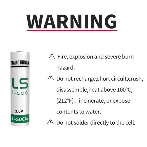 - Lithium-Thionyl Chloride Battery: The 3.6v AA ER14505 lithium battery has a capacity of 2700mah and a wide temperature range (-60°C to +85°C).