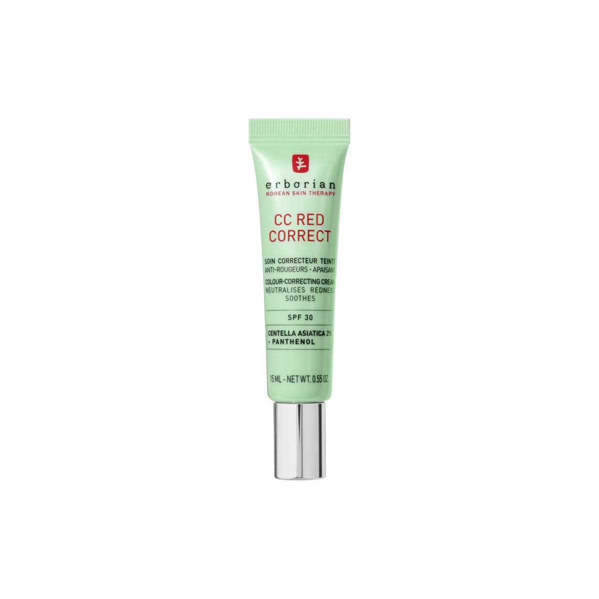 Erborian – CC Red Correct – Anti Redness Tinted Face Cream with Centella Asiatica Panthenol and Bisabolol – Green Neutralizing Shade with SPF 30 – Light Coverage – 15ml – Korean Cosmetic