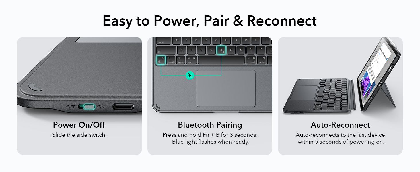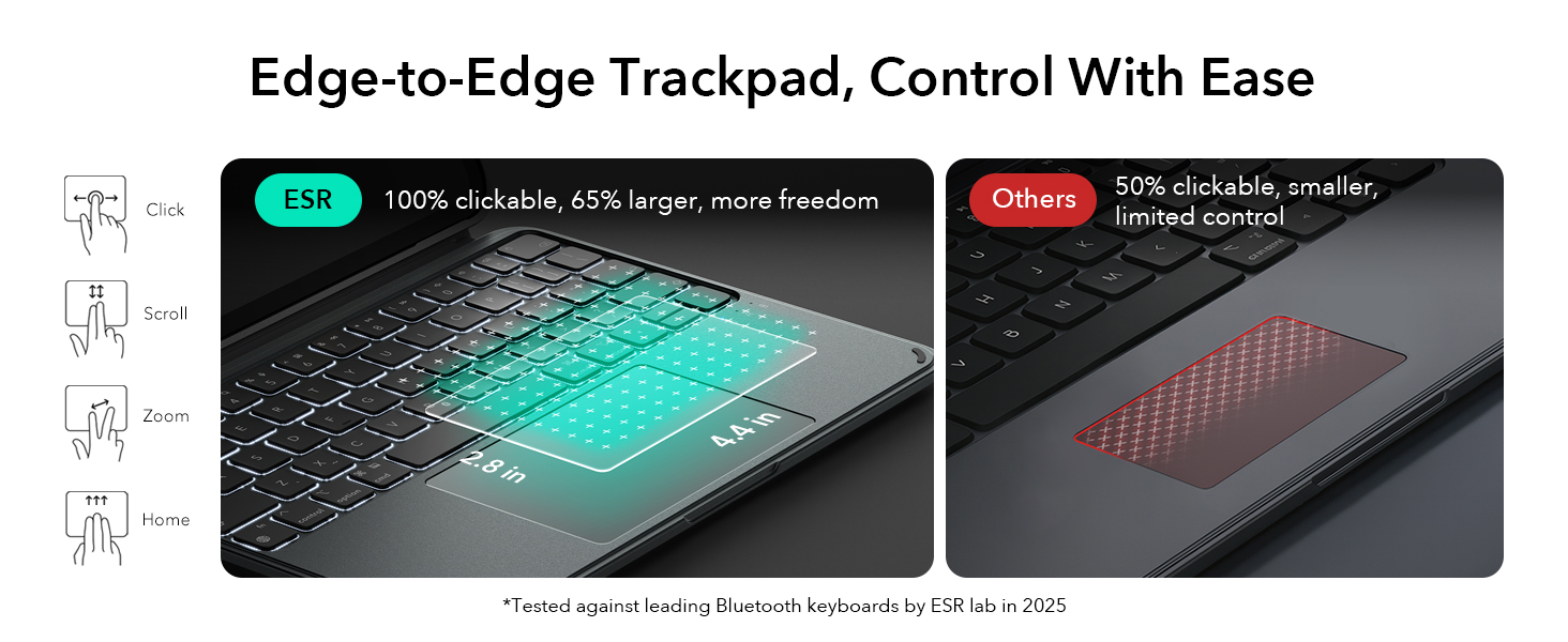 - Larger Click-Anywhere Trackpad: the fully responsive, 65% larger trackpad features a 112 × 70 mm surface, providing smoother and more precise control; this iPad keyboard enhances navigation with full iOS gesture support for easier editing, browsing, or switching apps