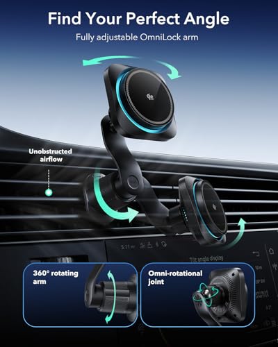 ESR OmniLock Qi2.2 Certified 25W MagSafe Car Mount Charger with CryoBoost, Phone Cooling MagSafe Car Charger, 360° Rotatable, Air Vent Magnetic Car Phone Holder for iPhone 17/16 with iOS 26, Black