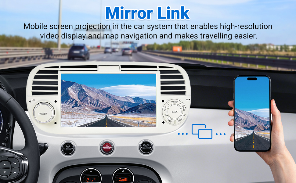 【Screen Mirroring for iOS/Android】With MirrorLink support, you can seamlessly synchronize your iOS or Android smartphone with the car radio. Visualize apps, videos, or navigation directly on the 9-inch touchscreen: iOS devices connect via Wi-Fi, while Android systems can be connected either wirelessly or via an original USB cable.