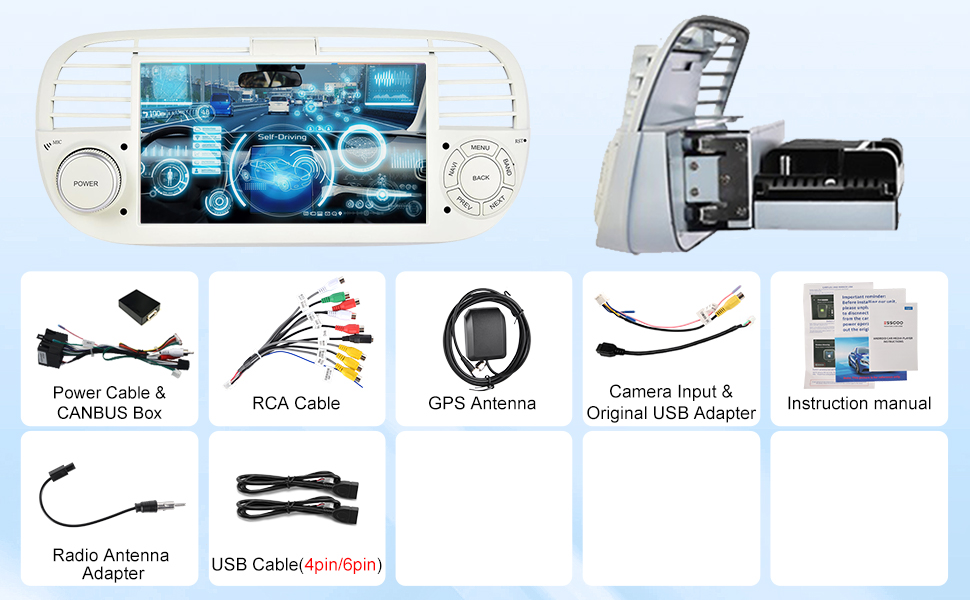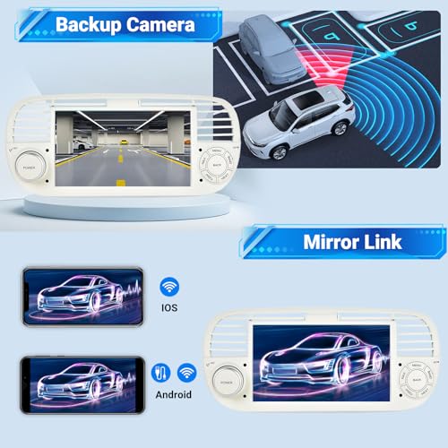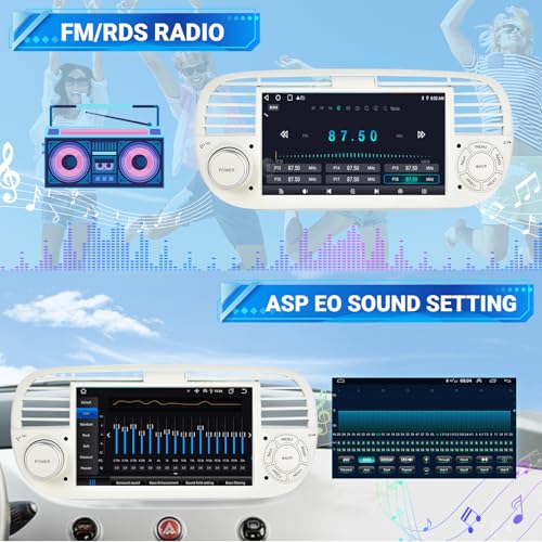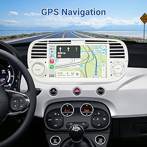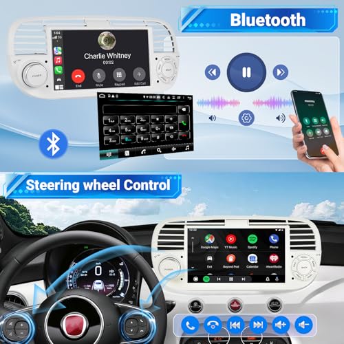 ESSGOO 4+64G Car Stereo Wireless Autoradio Android 14 Carplay and Android Auto For FIAT 500 2007-2015 with 7 inch HD Touchscreen Bluetooth FM GPS Navigation RDS WiFi USB White