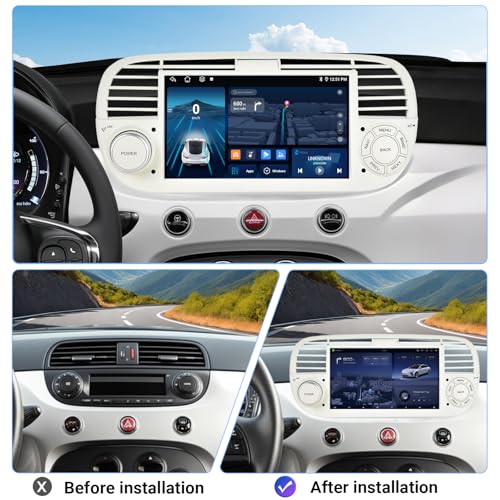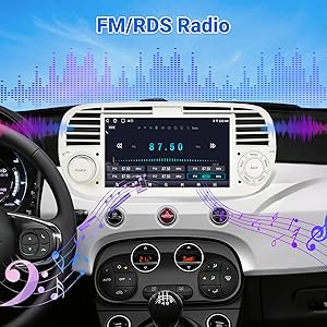 【7-inch Android 14 Car Radio for FIAT】This Android car radio for the FIAT 500 features a 7-inch HD capacitive touchscreen (1024 x 600 pixels), 4GB RAM, and 64GB of internal storage—ideal for effortlessly playing apps and videos, making driving a comfortable experience. Thanks to its plug-and-play design, there's no need for additional frames or cables: Install it in seconds and immediately enjoy features like steering wheel controls, reversing assist, and direct access to vehicle data via the integrated CAN bus system.
